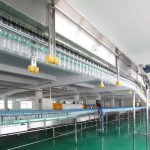 空气传送带由地面上的手臂支撑;气吹风机定居在空气传送带上。空气输送机的每个入口都有一个空气过滤器,以防止灰尘进入。瓶子通过吹风将瓶子转移到1台机器中。